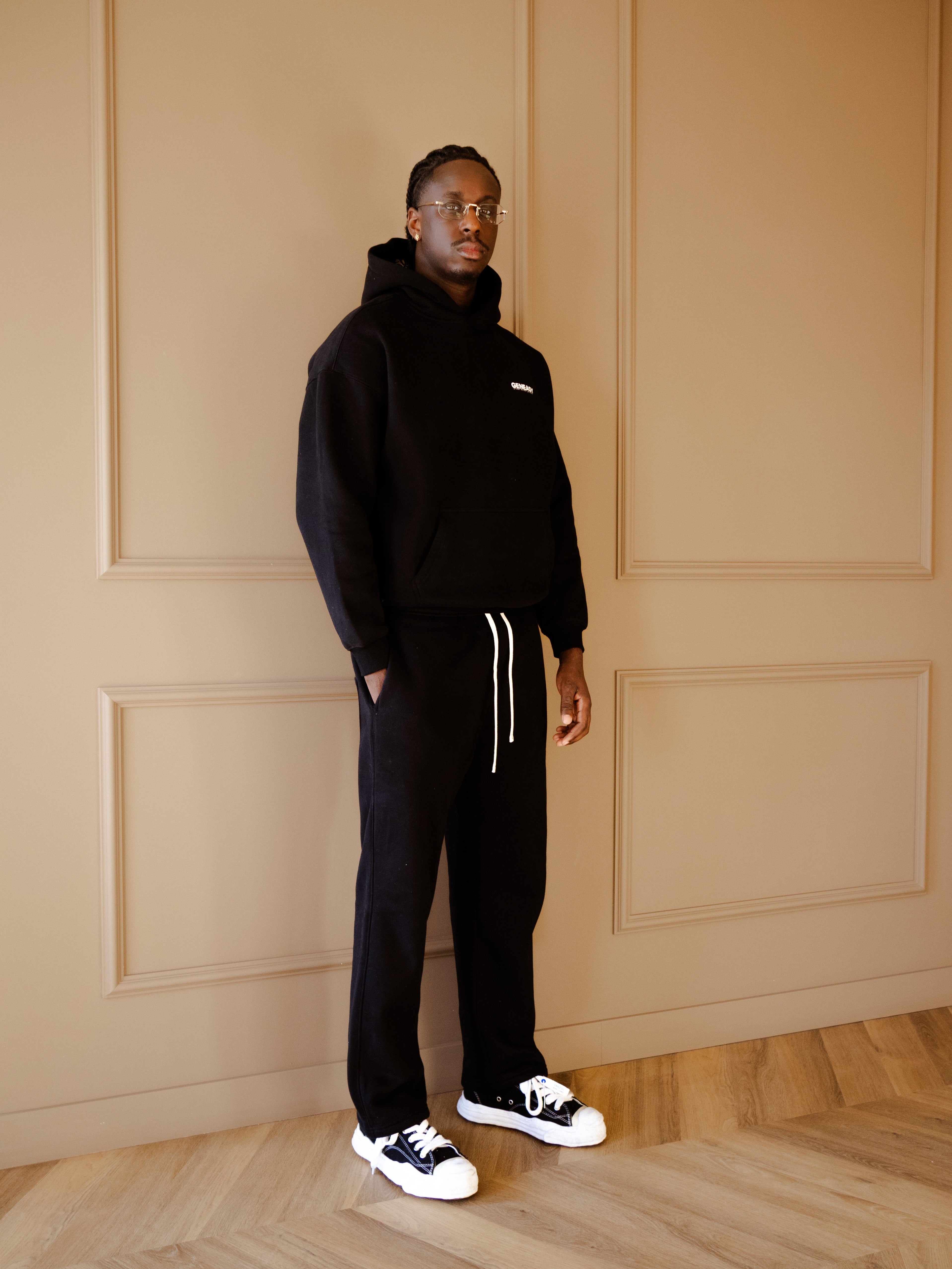 The blue print hoodie black